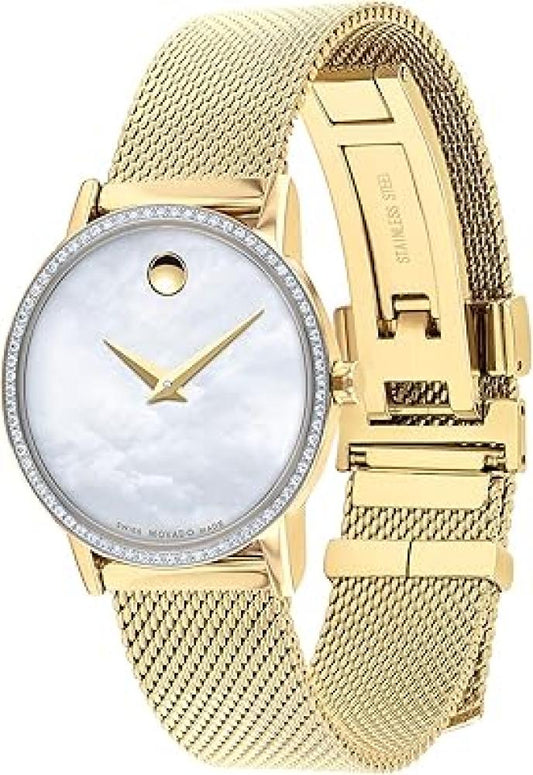 ساعة ميوزيوم للسيدات, سوار، تناظري، بمينا أبيض، بسوار ذهب